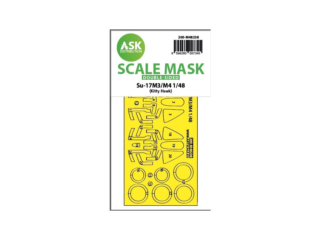1/48 Su-17M3/M4 doppelseitig selbstklebende Passformmaske aus Klarsichtteilen und Fahrwerksrädern für den Bausatz Kitty Hawk. ASK Distribution Katalognummer: 200-M48238