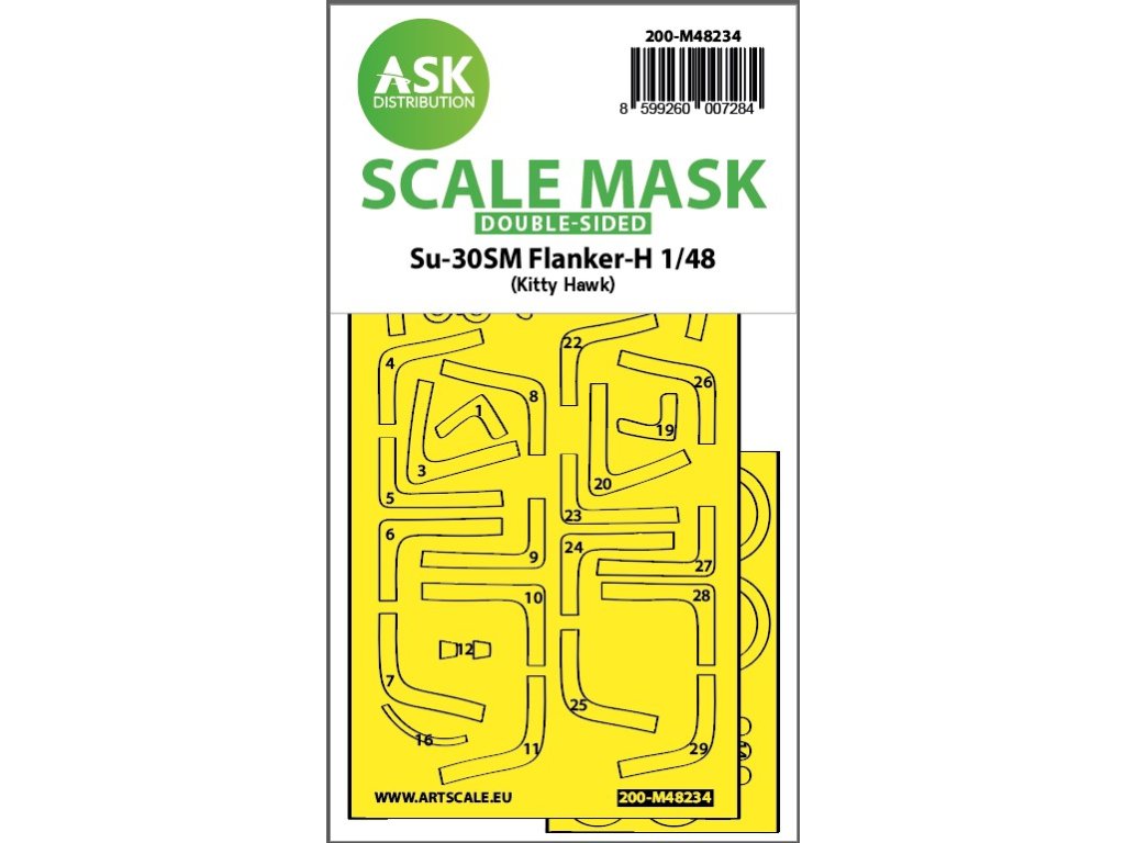 Art Scale Kit Distribution (ASK) stellt vorgestanzte und nummerierte Abdeckbögen für Plastikmodelle her. Die Masken sind in erster Linie für das Abkleben von Kabinen und Rädern gedacht, erleichtern aber auch das Abkleben anderer Teile des Modells. Jedes Kit wird für einen bestimmten Modellbausatz im entsprechenden Maßstab empfohlen, um maximale Genauigkeit und Benutzerfreundlichkeit zu gewährleisten.