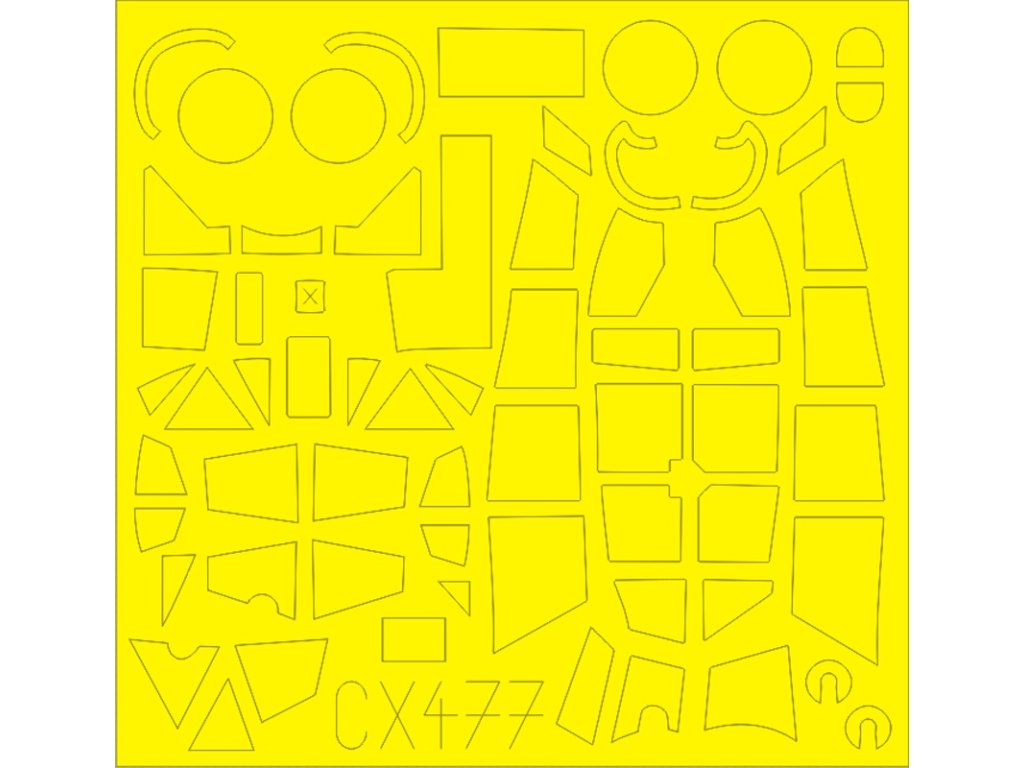1/48 Spitfire Tr.9 beidseitig selbstklebende Passformmaske aus Klarsichtteilen und Radmasken für Eduard Bausatz. Katalognummer 200-M48322