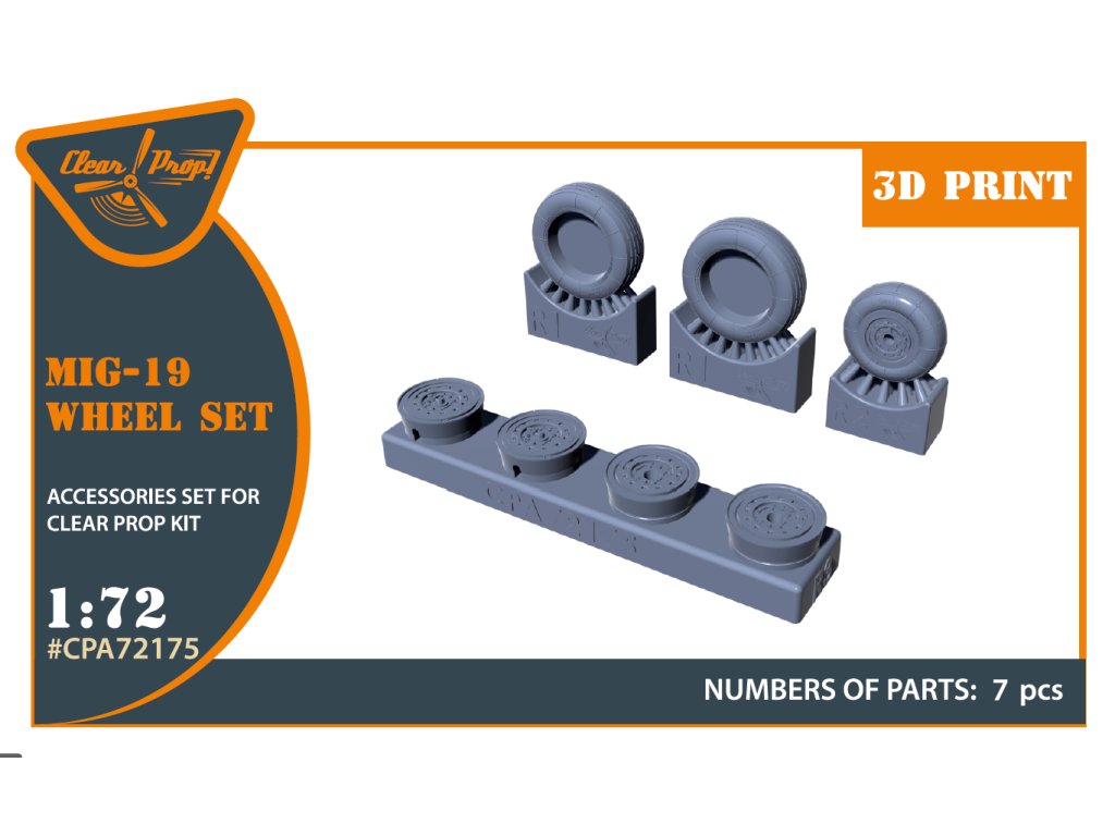 Dieser Bausatz im Maßstab 1:72 wurde für den sowjetischen Jagdflugzeug-Bausatz MiG-19 von Clear Prop entwickelt und stellt eine deutliche Verbesserung gegenüber den Standard-Plastikteilen dar. Der Satz enthält sowohl Haupt- als auch Vorderräder mit fein ausgeführten Reifenprofilen, realistischer Raddarstellung und einem Belastungseffekt, der dem Modell eine authentischere Haltung für die endgültige Präsentation verleiht.