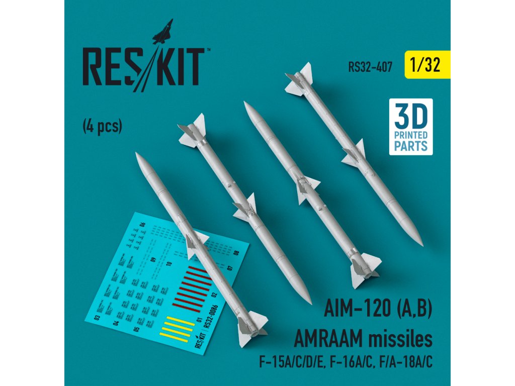 AIM-120 (A,B) AMRAAM missiles (4 pcs) (F-15A/C/D/E, F-16A/C, F/A-18A/C) (3D Printed) (1/32)