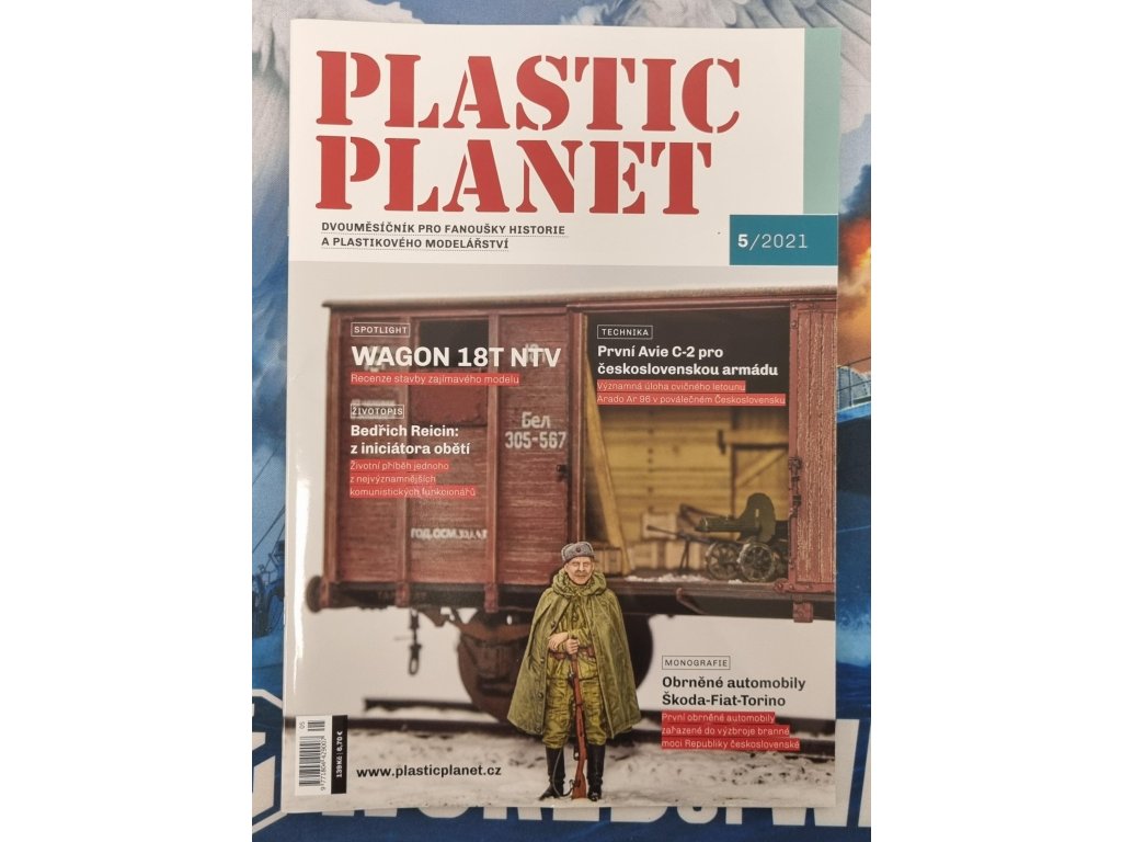 Plastic Planet 5/2021 - Die zweimonatliche Zeitschrift für Fans der Geschichte und des Plastikmodellbaus bringt tschechisch geschriebene Artikel über den Modelleisenbahnwagen 18T NTV, die Geschichte des ersten Flugzeugs Avia C-2 in der tschechoslowakischen Armee und ein Porträt von Bedrich Reicin.