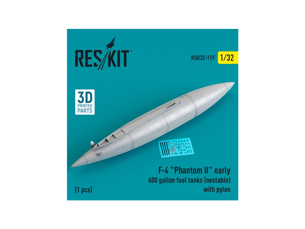 F-4 "Phantom II" early 600 gallon fuel tanks (nestable) with pylon (1 pcs) (3D Printed) (1/32)