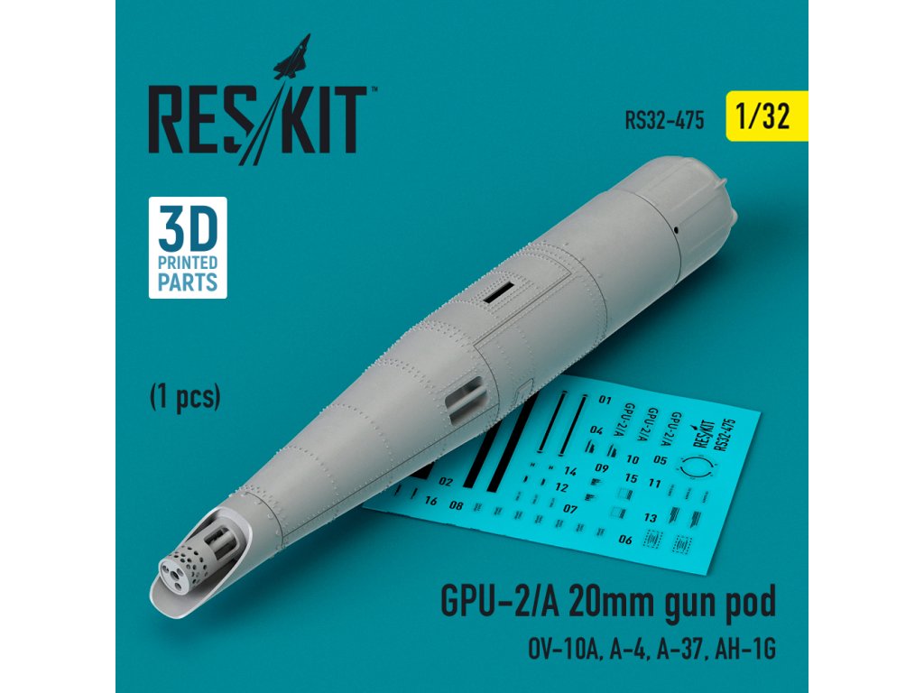 GPU-2/A 20mm gun pod (1 pcs) (OV-10A, A-4, A-37, AH-1G) (3D Printed) (1/32)