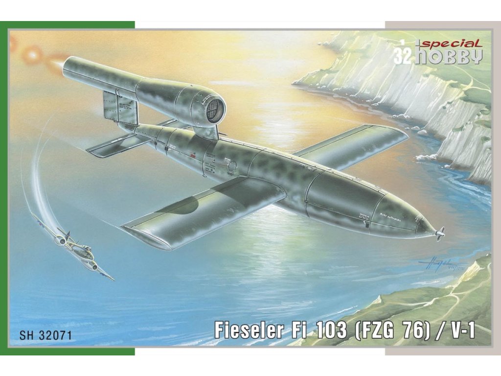 Das Modell der Fieseler Fi 103 / V-1 von Special Hobby in 1/32 bietet eine genaue und detaillierte Darstellung dieser technologisch bahnbrechenden Waffe. Der größere Maßstab ermöglicht eine gründliche Behandlung des Rumpfes, des Motors, der Aufhängungselemente und der Oberflächendetails. Das Modell eignet sich sowohl als Einzelstück als auch als Teil eines Dioramas, z. B. mit einem Werfer oder einem Träger.