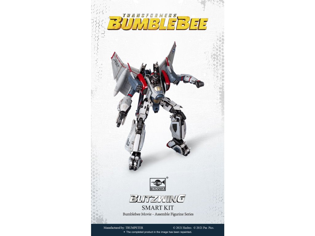 Authentisches Plastikmodell von Blitzwing aus Transformers 6 von Trumpeter. Einfacher Bausatz zum Einrasten mit vorlackierten Teilen. Geeignet für Anfänger und jüngere Modellbauer.