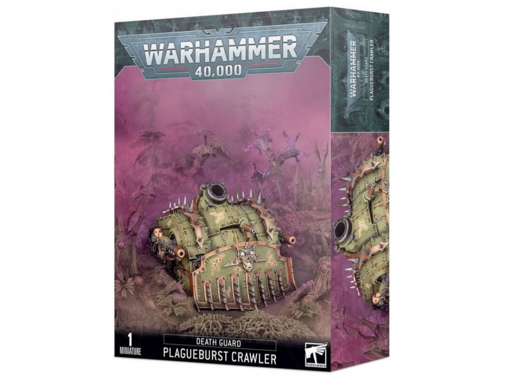 Warhammer 40,000: Death Guard - The Plagueburst Crawler is a heavily armored artillery vehicle of the Death Guard Legion, combining demonic durability with devastating firepower. The model depicts a distinctive hull covered in rust, mold and mutations, equipped with the Plagueburst Mortar and other weapons suitable for supporting the slow, relentless advance of Nurgle forces.