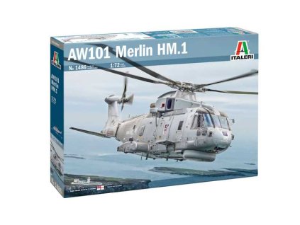 1/72 scale plastic model of AW-101 Merlin HM.1 by Italeri. Modern British naval helicopter for anti-submarine warfare and rescue operations.