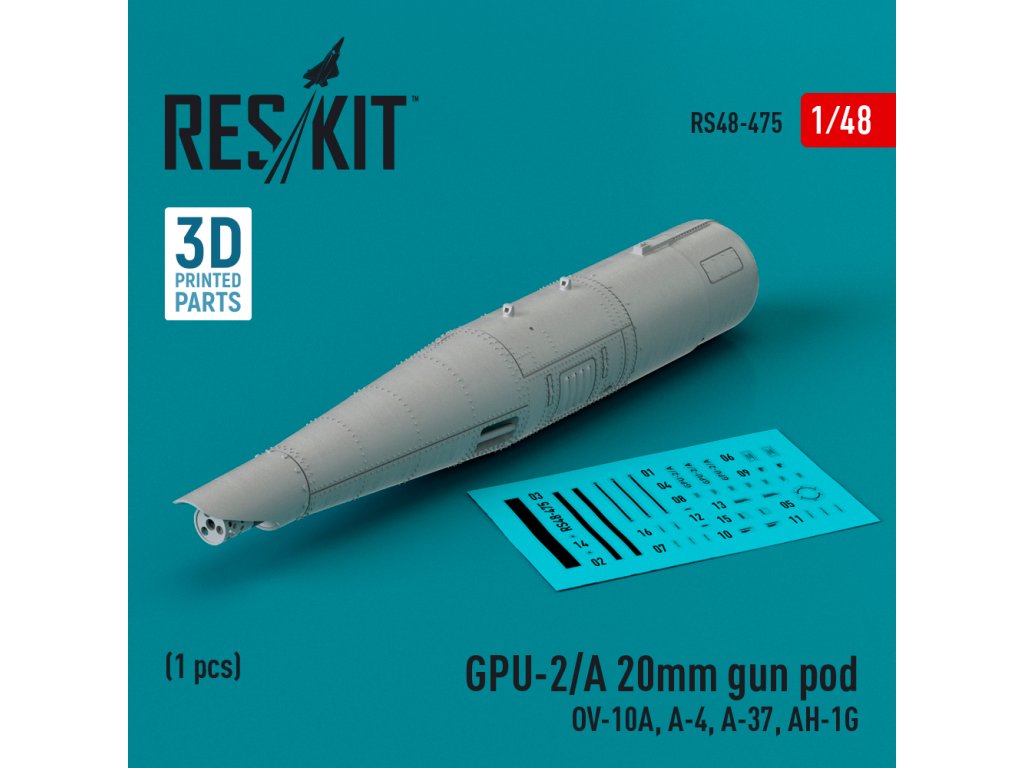 GPU-2/A 20mm gun pod (1 pcs) (OV-10A, A-4, A-37, AH-1G) (3D Printed) (1/48)