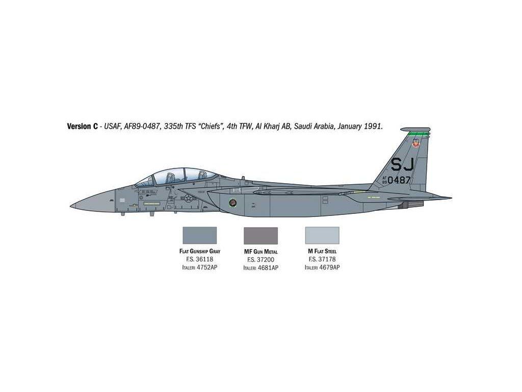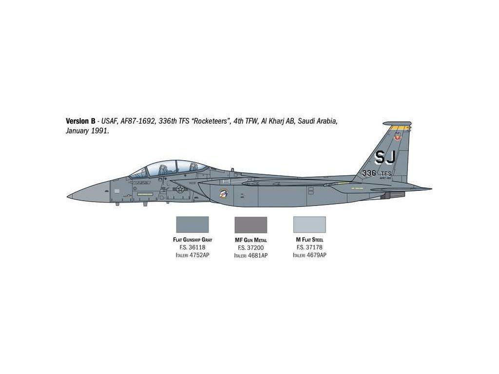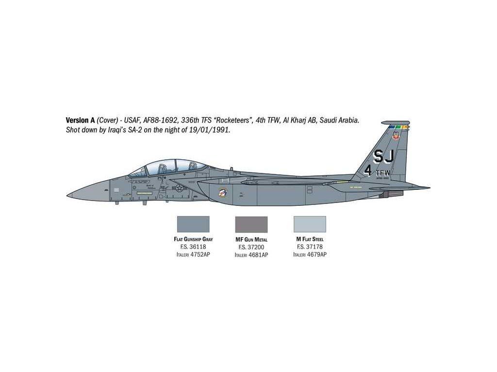 The McDonnell Douglas (later Boeing) F-15E Strike Eagle is a two-seat multirole variant of the legendary fighterF-15 aircraft, developed specifically for ground force air support and precision bombing roles. While the original F-15 was designed solely as a fighter to gain air superiority, the E version brought a major change in concept - combining air combat capability with the ability to carry a wide range of precision-guided and conventional bombs and missiles. It entered service in 1988 and quickly became one of the US Air Force's most effective multi-role aircraft. The F-15E has proven itself in a number of conflicts, including Operation Desert Storm (1991), combat in the Balkans, Afghanistan and Iraq, where it has demonstrated the ability to operate in all weather and challenging conditions. The Strike Eagle provides an attractive template for modellers due to its robust silhouette, rich weapons system and varied colour schemes from different operations.