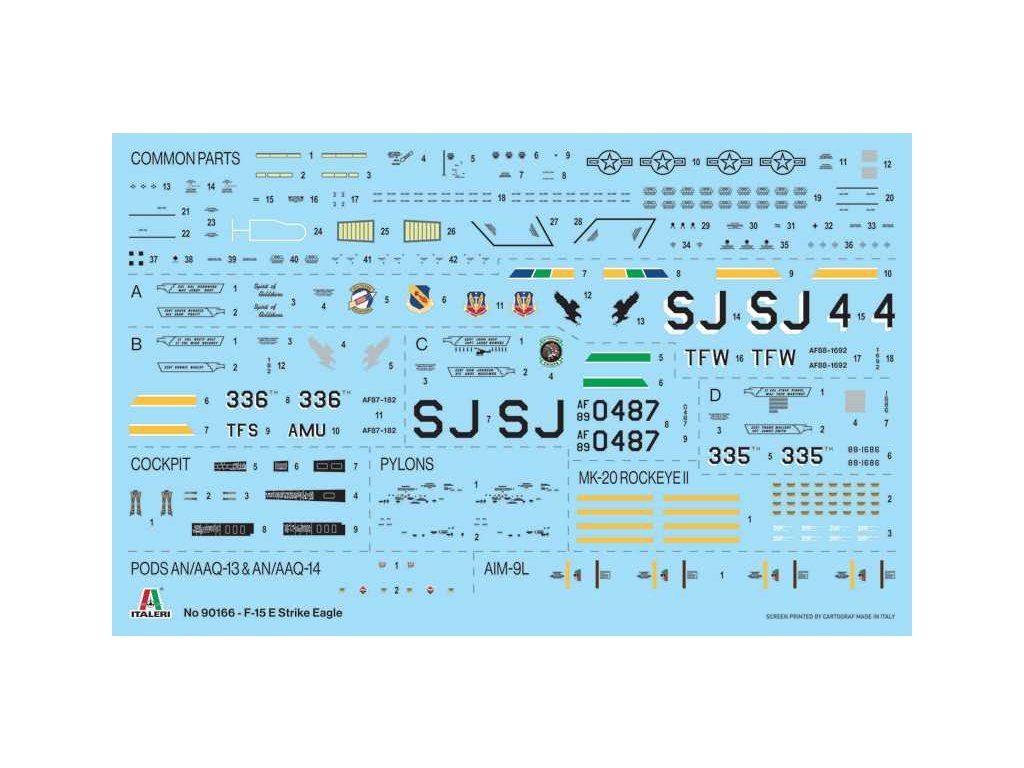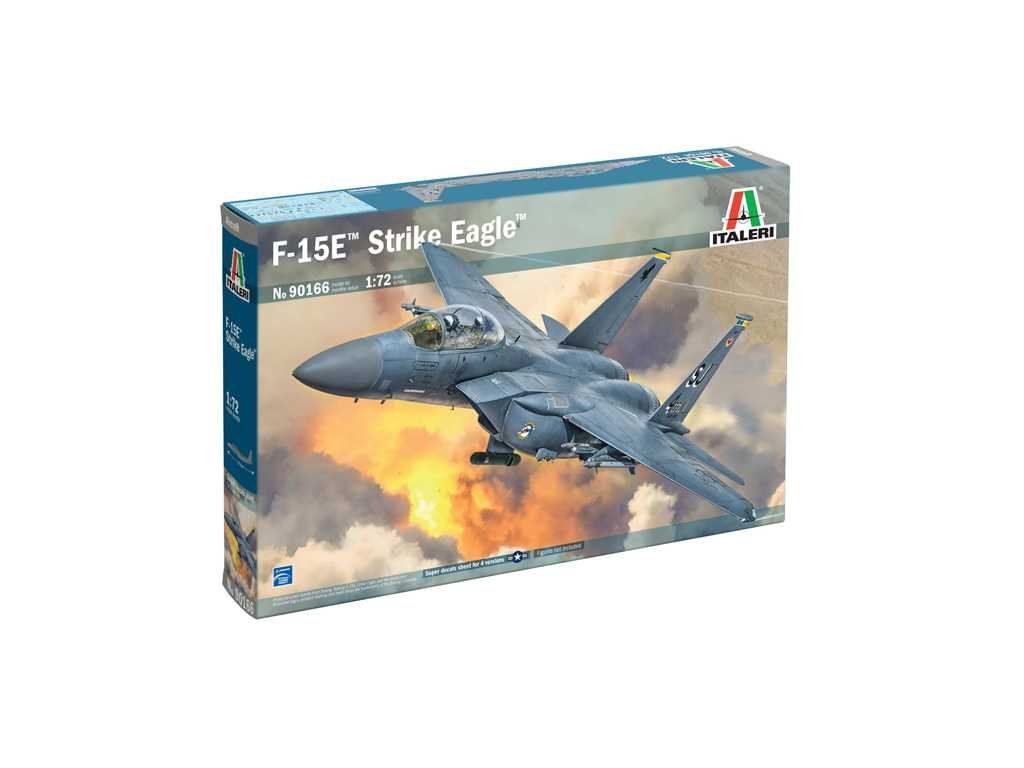 Italeri 90166 1/72 F-15E Strike Eagle is a plastic model of an American two-seat fighter bomber. The kit includes decals for 4 different versions and color instructions. The 1:72 scale allows to build a detailed model with reasonable size suitable for display. The package does not include the paints or glues needed for assembly.