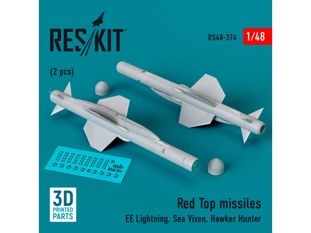Red Top missiles (2pcs) (EE Lightning, Sea Vixen, Hawker Hunter) (3D Printed) (1/48)