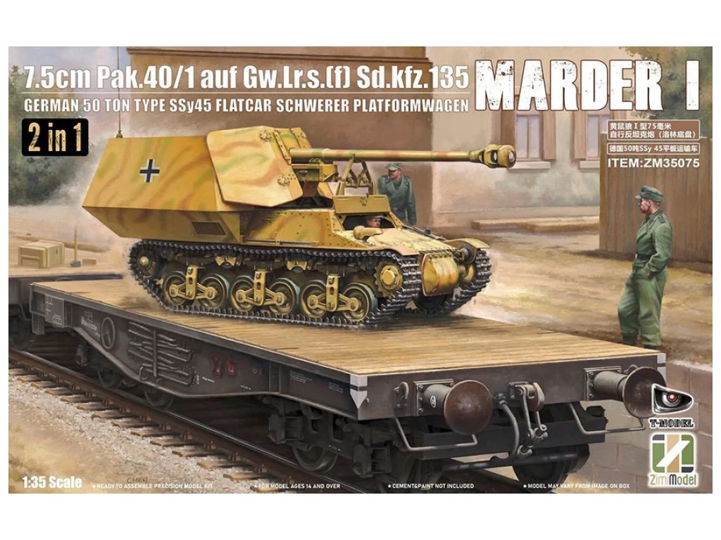1/35 Marder I 7,5 cm PaK.40/1 auf Gw.Lr.s.(f) Sd.Kfz.135 German 50 ton type SSy45 Flatcar