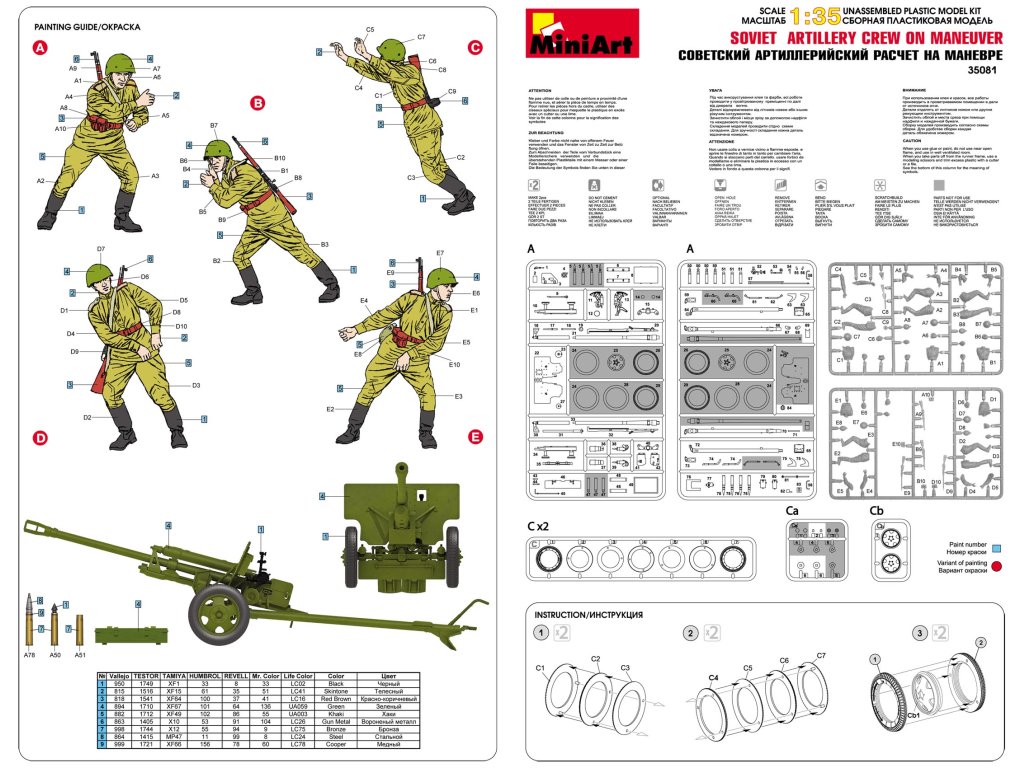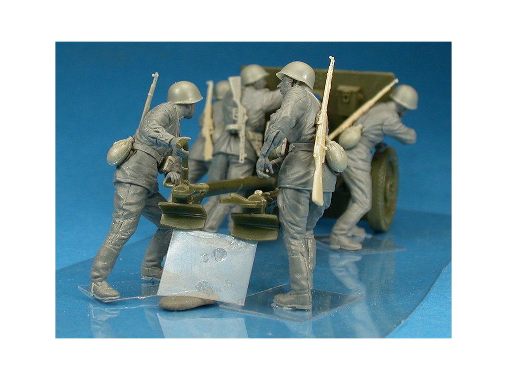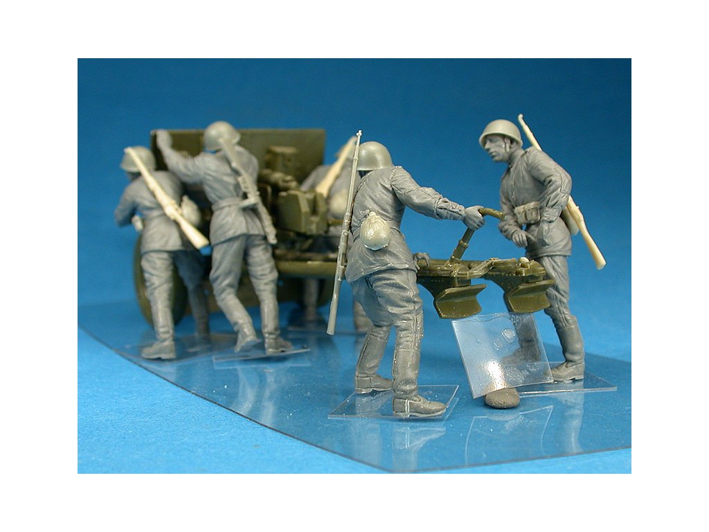 MiniArt ponúka realisticky stvárnenú sadu piatich sovietskych delostreleckých diel v mierke 1/35, zachytených počas presunov alebo manévrov. Figúrky v dynamických pózach dopĺňajú detailne spracované uniformy, výstroj a výzbroj. Ideálny doplnok k modelom delostrelectva alebo ako súčasť väčšej diorámy pohybov alebo preskupenia jednotiek.