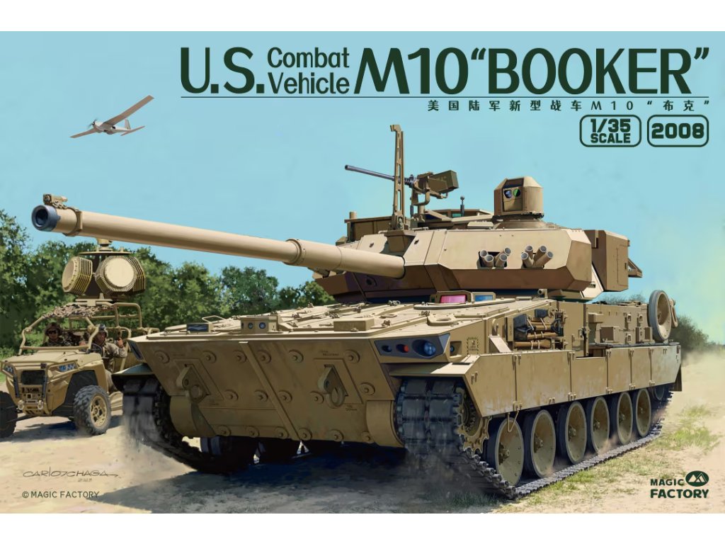 Americké bojové vozidlo M10 Booker 1/35 Magic Factory je moderné americké bojové vozidlo, ktoré nedávno pribudlo do arzenálu americkej armády. Model v mierke 1/35 ponúka detailné spracovanie a je vhodný na stavbu moderných vojenských scén. Balenie neobsahuje farby ani lepidlo potrebné na zostavenie.