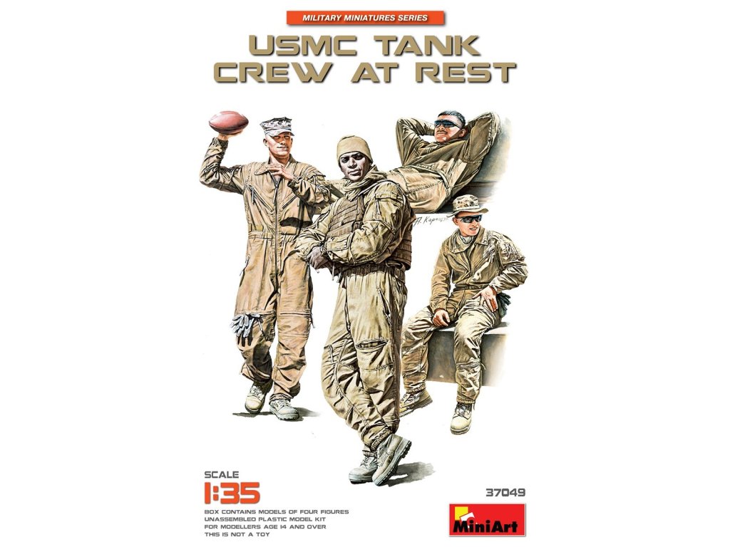 Sada USMC Tank Crew at Rest v mierke 1/35 od MiniArtu obsahuje štyri plastové figúrky USMC (USMC) v moderných uniformách zodpovedajúcich výstroju používanému od konca 90. rokov 20. storočia. Uniformy USMC pochádzajú zo začiatku 90. rokov až po súčasnosť. Figúrky znázorňujú členov posádky tanku pri odpočinku mimo bojového nasadenia - v stoji, v sede a uvoľnenepózach, čo z nich robí ideálny doplnok pre diorámy s logistickými alebo oddychovými scénami.