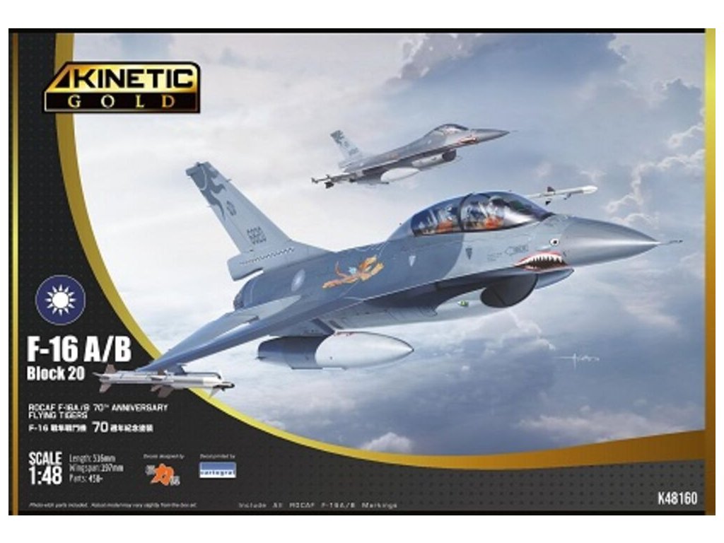 Kinetic 1/48 F-16A/B Block 20 je model ľahkého viacúčelového stíhacieho lietadla F-16 Fighting Falcon v modernizovanej verzii Block 20, ktoré používajú najmä taiwanské vzdušné sily. Balenie neobsahuje farby ani lepidlo potrebné na zostavenie.