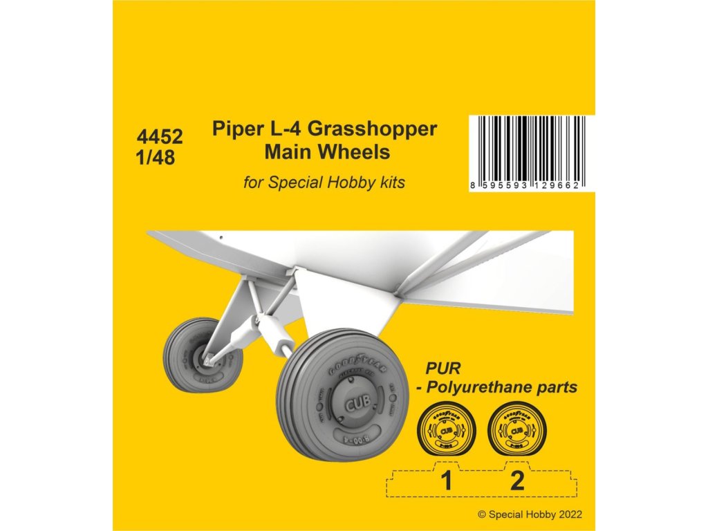 Jednostranná samolepiaca maska z priehľadných dielov a masky kolies pre stavebnicu Special Hobby 1/48 L-4 Grasshopper, katalógové číslo 200-M48078....