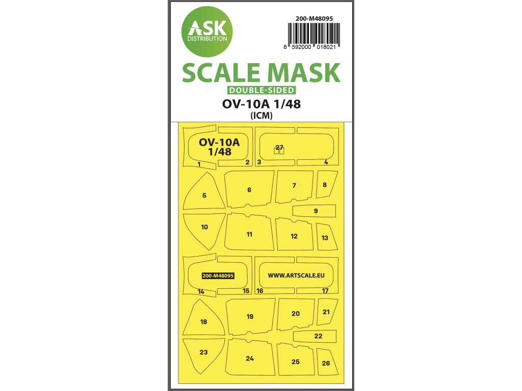 Obojstranná samolepiaca maska čírych dielov a masky kolies pre stavebnicu ICM 1/48 OV-10A, katalógové číslo 200-M48095. Predseknutá maskovacia fólia Kabuki najvyššej kvality, najlepšia technologická výroba prierezu fólie. Všetky diely masky potlačené číslami, ktoré spolu s návodom určujú presnú polohu, môžua aplikáciu na maskovaný model - veľké uľahčenie práce vedúce k dokonalému modelu.