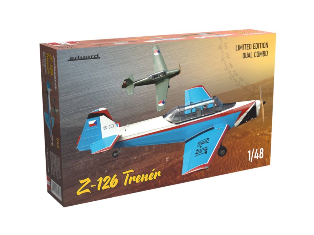 Eduard Z-126 Trainer DUAL COMBO 1/48 je stavebnica československého dvojmiestneho cvičného lietadla Zlín Z-126 z 50. rokov. Ide o limitovanú edíciu stavebnice s detailnými plastovými dielmi, farebnými leptanými doplnkami, maskami a desiatimi kamuflážnymi schémami. Balenie neobsahuje farby ani lepidlo potrebné na zostavenie.