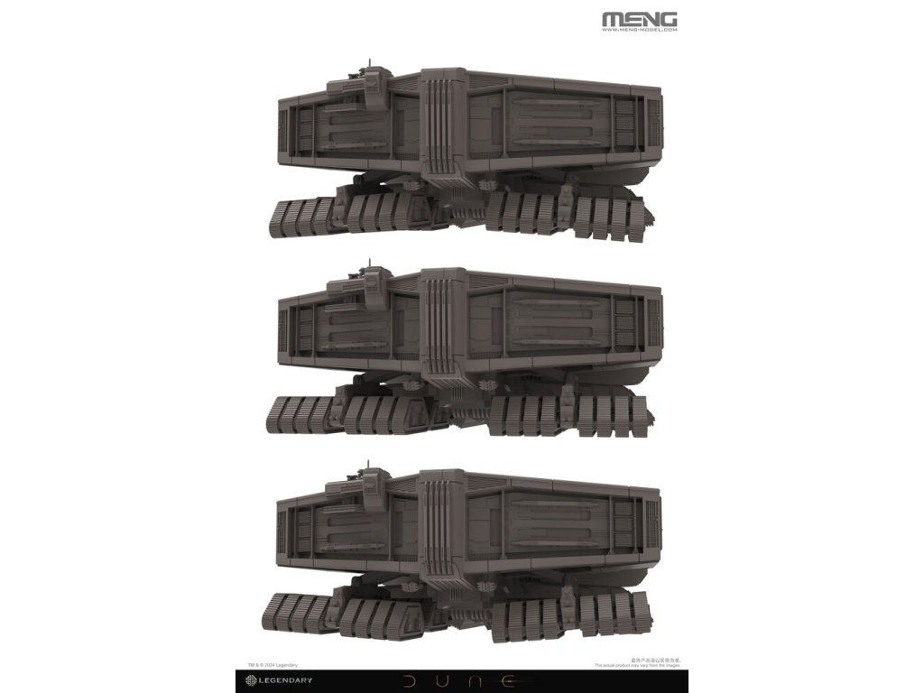 Plastový model Spice Harvester z filmu DUNE od spoločnosti MENG. Detailný model s pohyblivými pásmi a zberným zariadením. Stavebnica neobsahuje lepidlo ani farby.