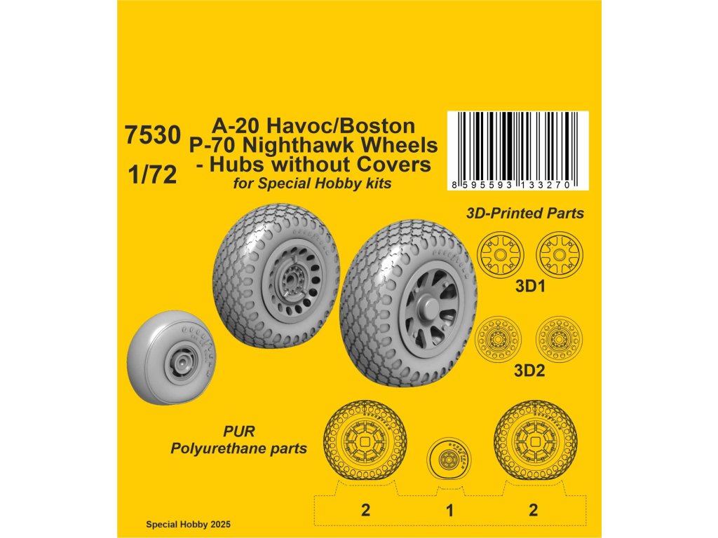 1/72 A-20 Havoc/Boston/ P-70 Nighthawk Wheels/ Hubs without Covers / for Special Hobby kits