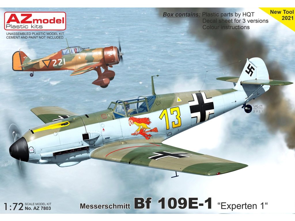 Model Bf 109E-1 "Experten 1" v mierke 1/72 od AZ Model znázorňuje ranú verziu slávneho nemeckého stíhacieho lietadla Messerschmitt Bf 109E, ktoré sa zúčastnilo bojov na začiatku druhej svetovej vojny. Balenie obsahuje detailné plastové diely, realistický kokpit, jemné povrchové detaily a obtlačky na označenie strojov elitných nemeckých pilotov (Experten). Balenie neobsahuje farby ani lepidlo potrebné na zostavenie.