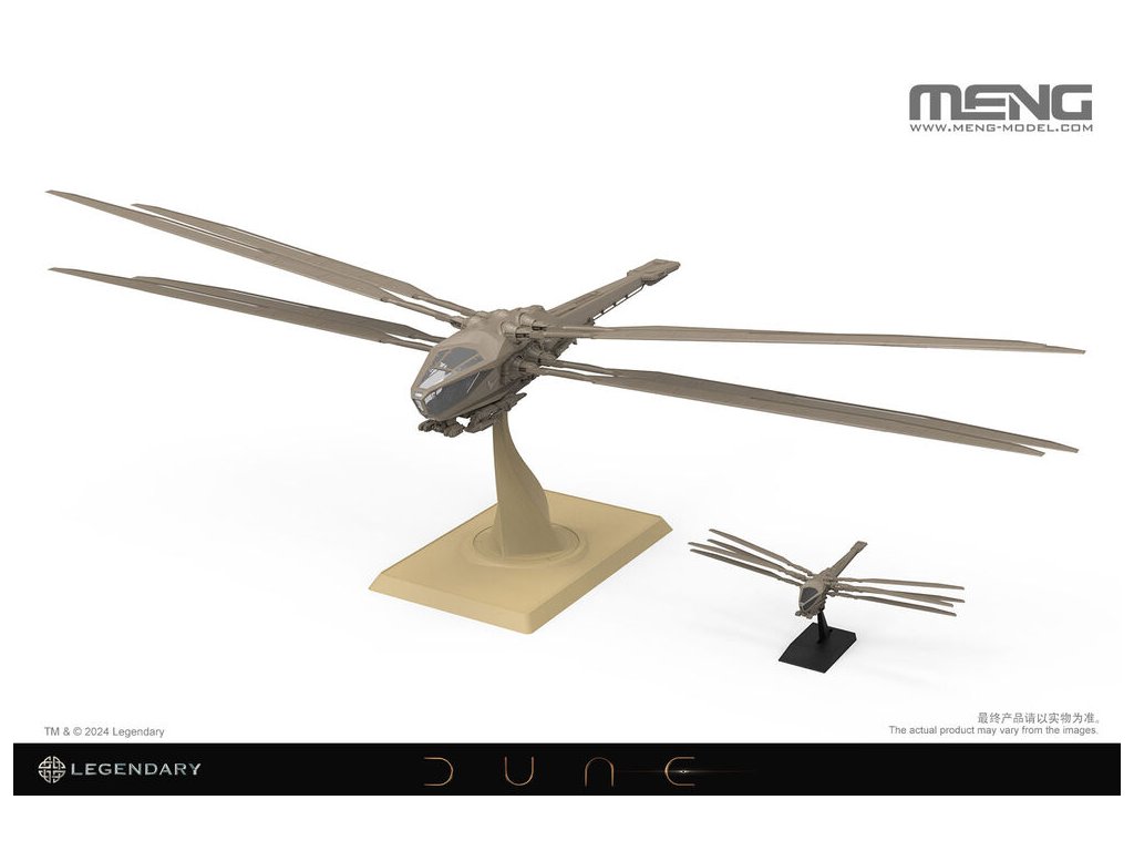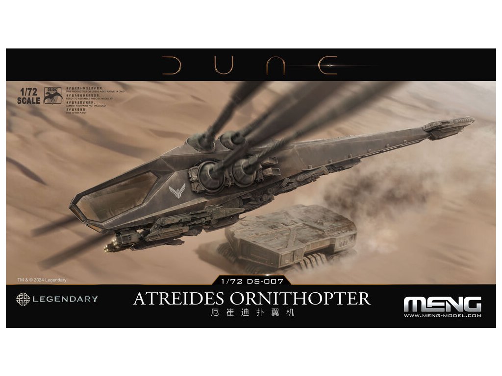 Plastikový model lietadla Atreides Ornithopter z filmu DUNE v mierke 1/72. Detailný model s pohyblivými krídlami, podvozkom a figúrkami posádky. Stavebnica neobsahuje lepidlo ani farby.