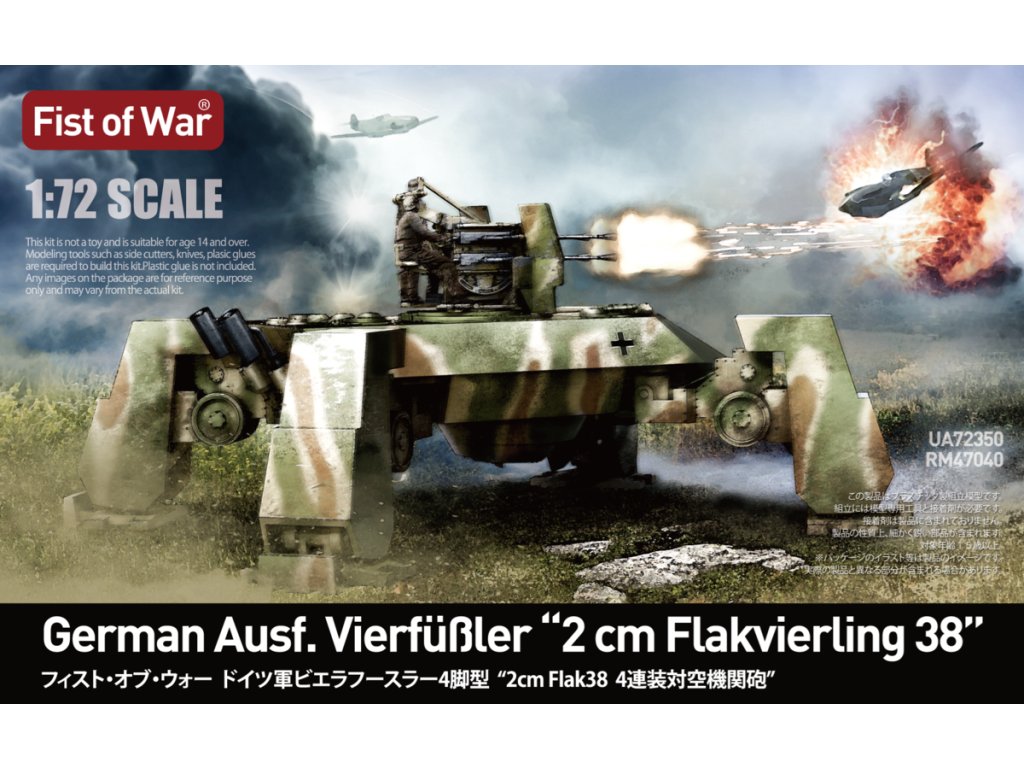 Modelcollect 1/72 Nemecký E-50 Ausf. Vierfüßler "2 cm Flakvierling 38" je plastiková stavebnica fiktívneho bojového stroja v mierke 1/72. Tento štvornohý "chodec" vychádza z koncepcie tanku E-50 a je vybavený 2 cm protilietadlovou zbraňou Flakvierling 38.
