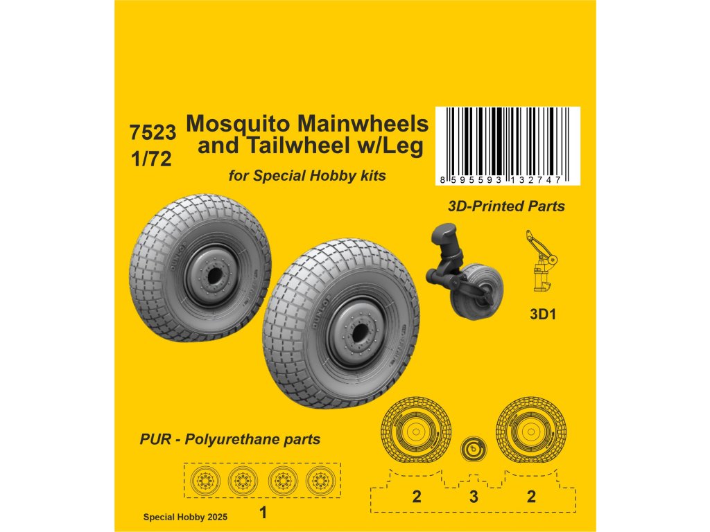 1/72 Mosquito Mainwheels and Tailwheel w/Leg / for Special Hobby kits