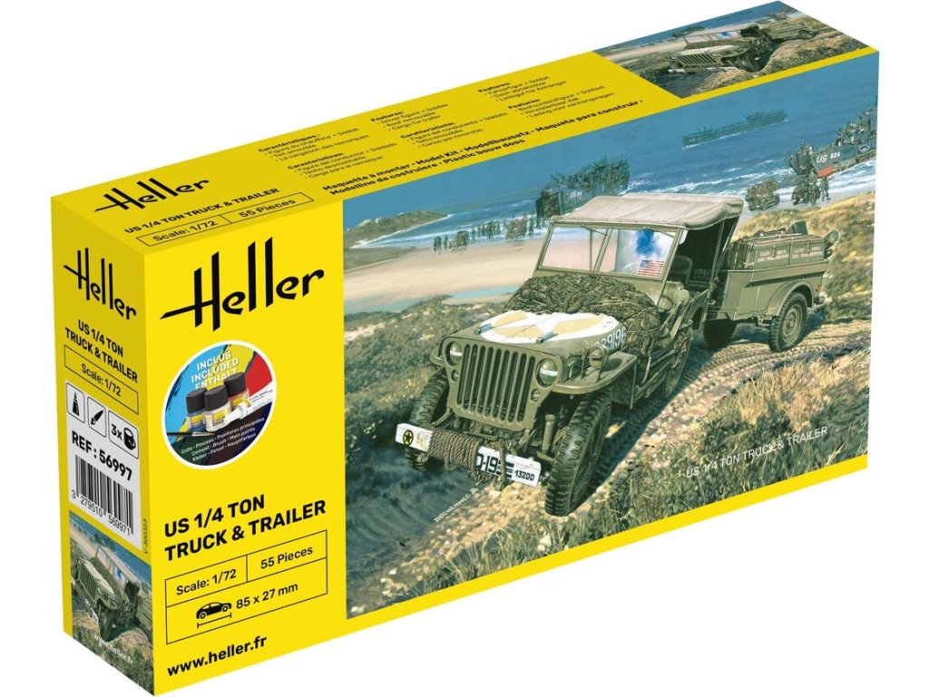 1/72 STARTER KIT US 1/4 Ton Truck & Trailer - Heller