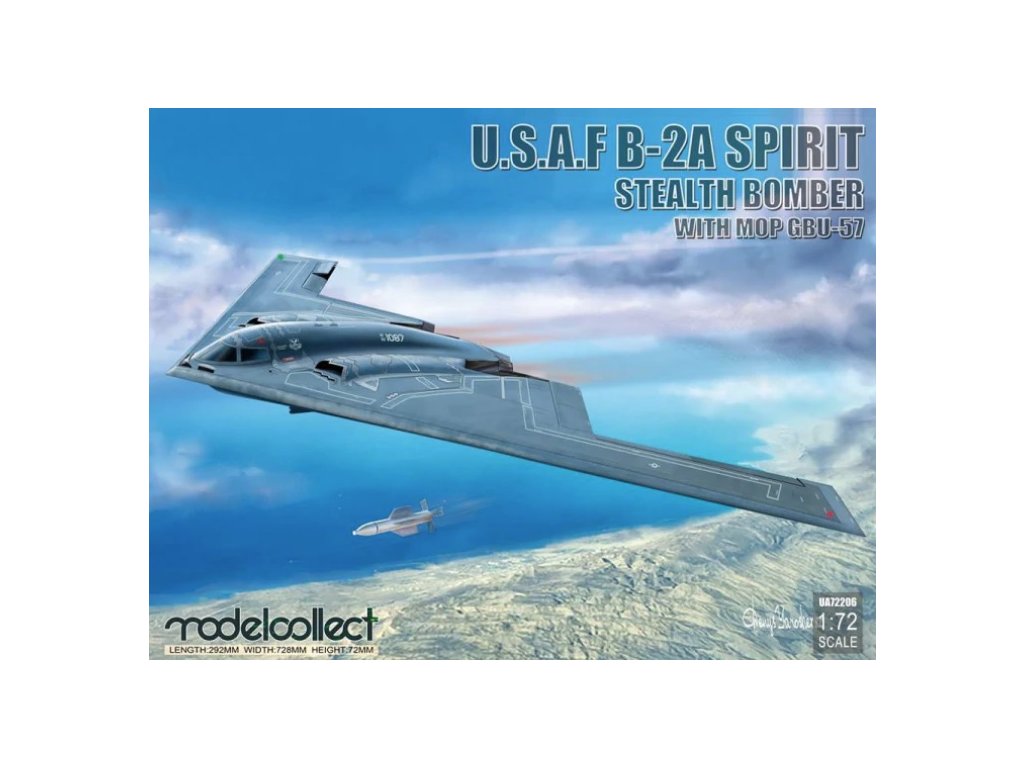 Modelcollect 1/72 USAF B-2A Spirit Stealth Strategic Bomber je plastiková stavebnica slávneho amerického strategického bombardéra v mierke 1/72. Toto lietadlo je symbolom modernej technológie stealth a predstavuje jednu z najmodernejších bojových platforiem súčasnosti.