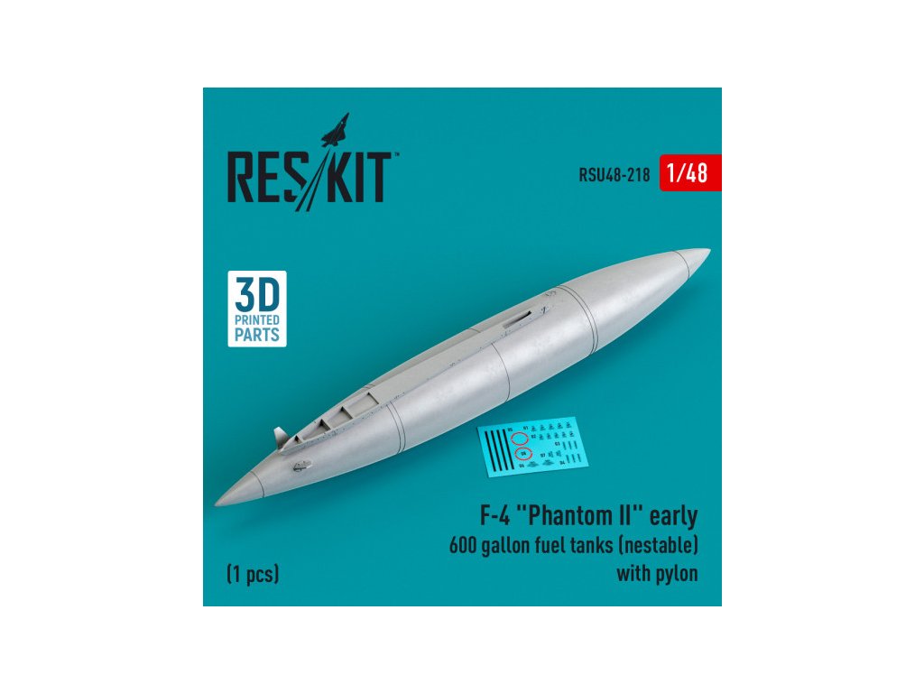 F-4 "Phantom II" early 600 gallon fuel tanks (nestable) with pylon (1 pcs) (3D Printed) (1/48)