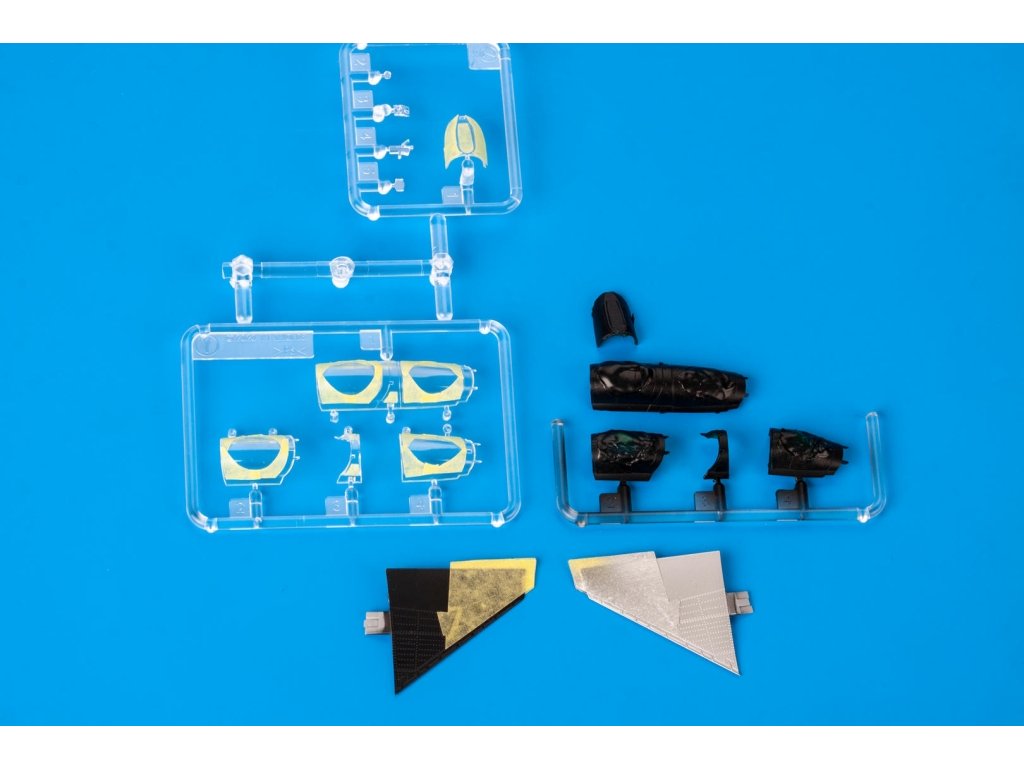 Obojstranná samolepiaca maska čírych dielov a masky kolies pre stavebnicu Eduard 1/48 Messerschmitt Bf 109F, katalógové číslo 200-M48179....
