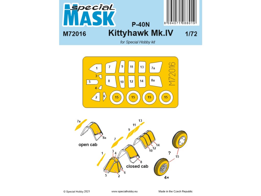 Maska pro plastikový model 1/72 P-40N/Kittyhawk Mk.IV