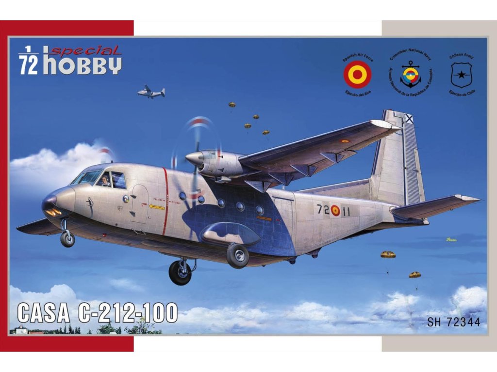 CASA C-212-100 je ľahké transportné lietadlo, ktoré bolo navrhnuté španielskou spoločnosťou CASA (Construcciones Aeronáuticas SA) a uvedené do prevádzky v roku 1974. Lietadlo si vďaka svojej spoľahlivosti a flexibilite získalo obľubu u vojenských aj civilných užívateľov, pričom slúžilo v desiatkach krajín po celom svete. Tento model v mierke 1/72 verne zobrazuje jeho detaily a ponúka možnosť zostaviť ho s rôznymi kamuflážnymi schémami. Súčasťou balenia sú obtisky a návod na zostavenie.