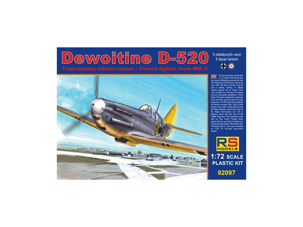 Plastikový model letadla 1/72 Dewoitine D-520 Luftwaffe 5 decal v. for Luftwaffe, France