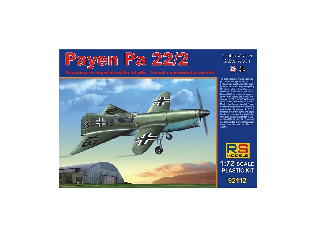 Plastikový model letadla 1/72 Payen Pa.22 2 decal v. for Luftwaffe, France