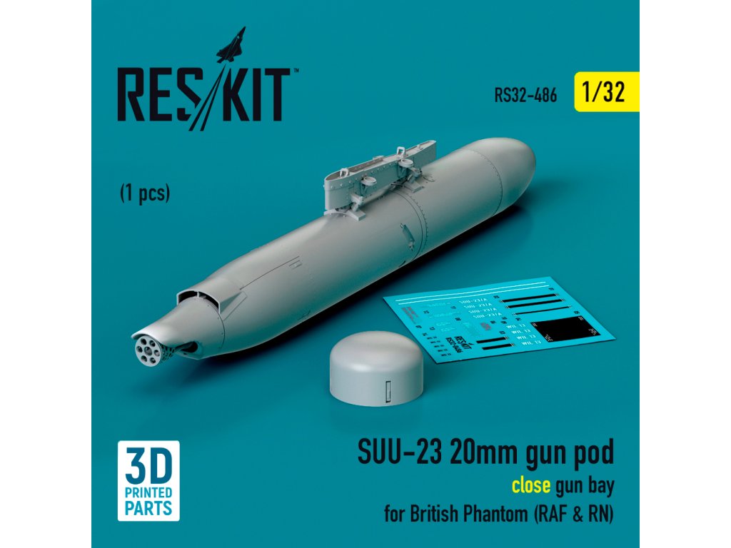 SUU-23 20mm gun pod (close gun bay) for British Phantom (RAF & RN) (1 pcs) (3D Printed) (1/32)