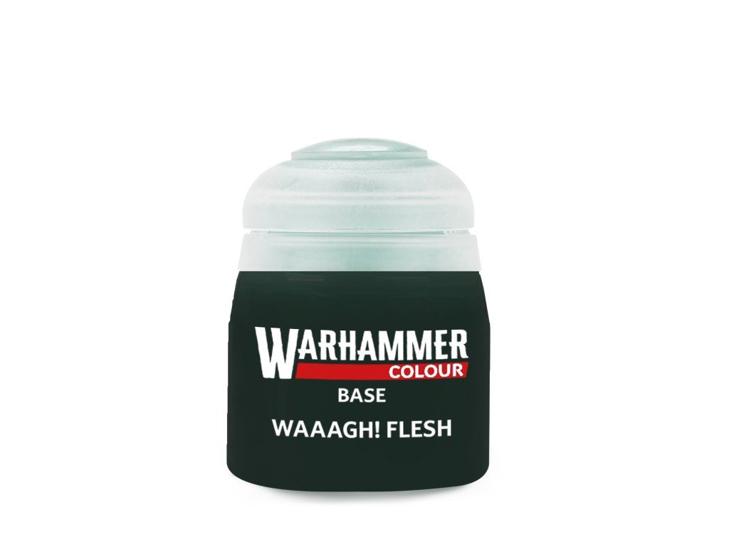 Waaagh! Flesh is a distinctive dark green shade designed primarily for painting the skins of Orcs, Goblins and other green creatures from both Warhammer 40,000 and Warhammer Age of Sigmar. The color perfectly captures the rough and raw nature of these factions and forms the perfect base for layering lighter green tones, shading and highlighting musculature. It is also suitable for painting organic elements, plant details or creating contrasting colour schemes.